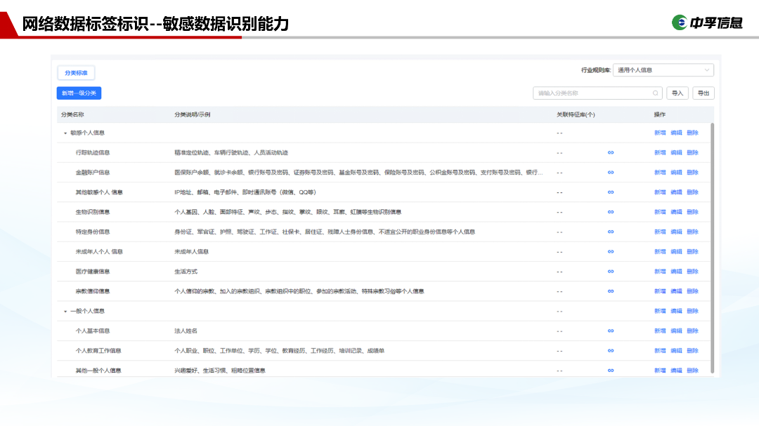 部署于数据发送方内部,实现跨主体交互数据识别、属性提取、动态标签生成,精准获取数据五元组、API、敏感程度、数据规模等信息,按标准生成包含10大核心字段的标准化动态标签,支持医疗、党政等行业重要数据、商业秘密、敏感个人信息的专属标识打标。